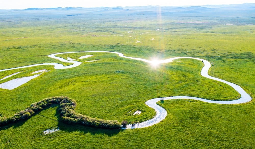 這是6月12日在內(nèi)蒙古自治區(qū)錫林郭勒盟東北部拍攝的烏拉蓋草原(無人機(jī)照片)。