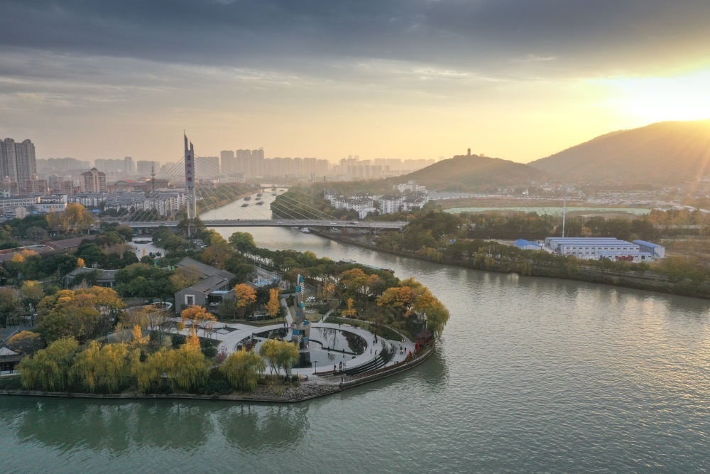 江蘇無錫運(yùn)河主航道與運(yùn)河公園景色(無人機(jī)照片,12月9日攝)。