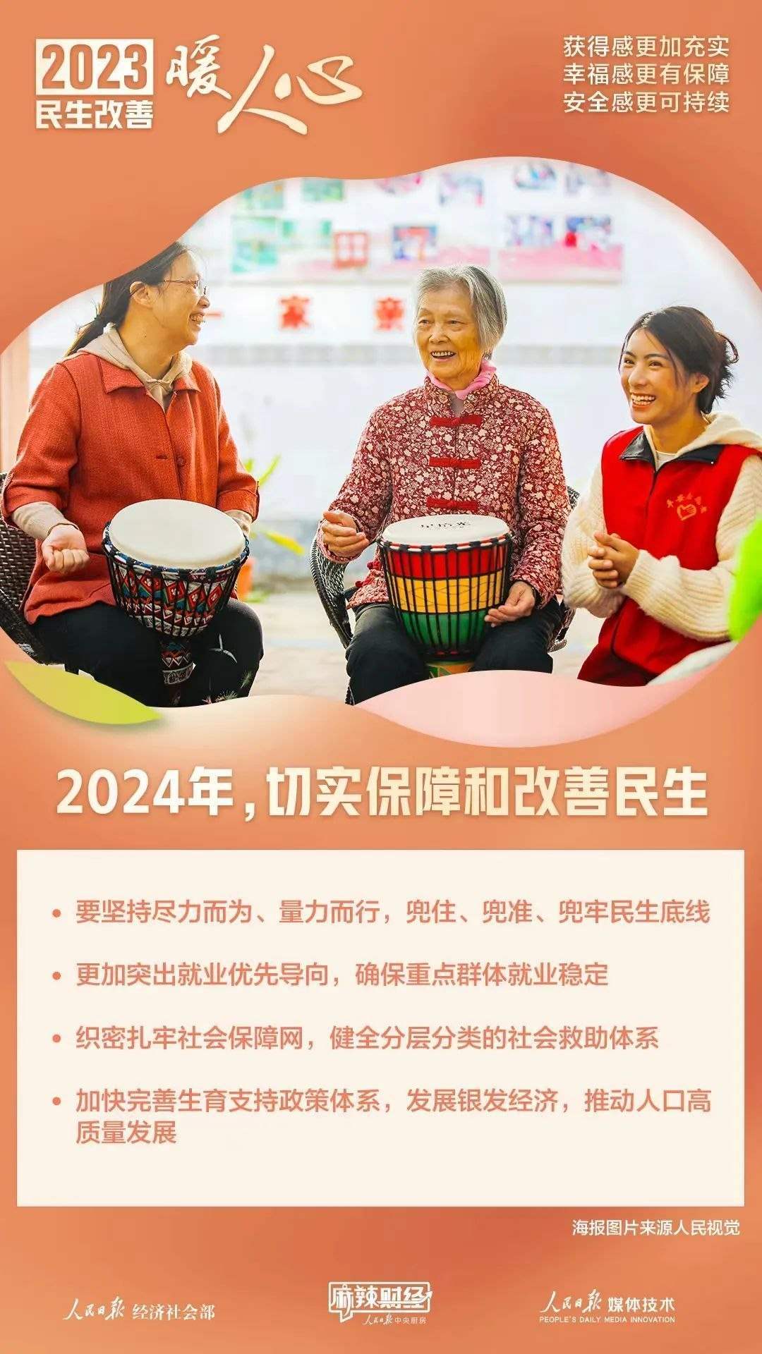 2023年,以習(xí)近平同志為核心的黨中央始終聚焦民生關(guān)切,堅(jiān)持人民至上、生命至上,兜住、兜準(zhǔn)、兜牢民生底線(xiàn),民生保障有力有效。這一年的民生答卷溫暖人心。