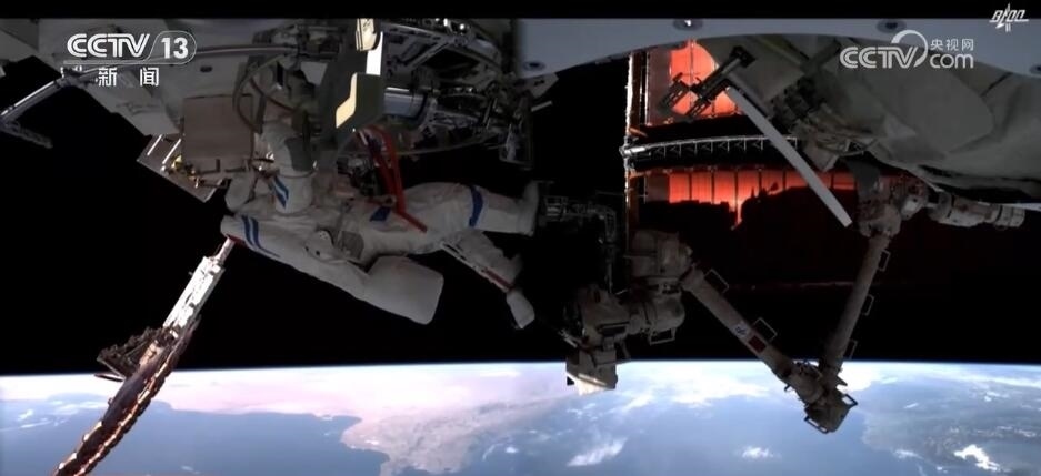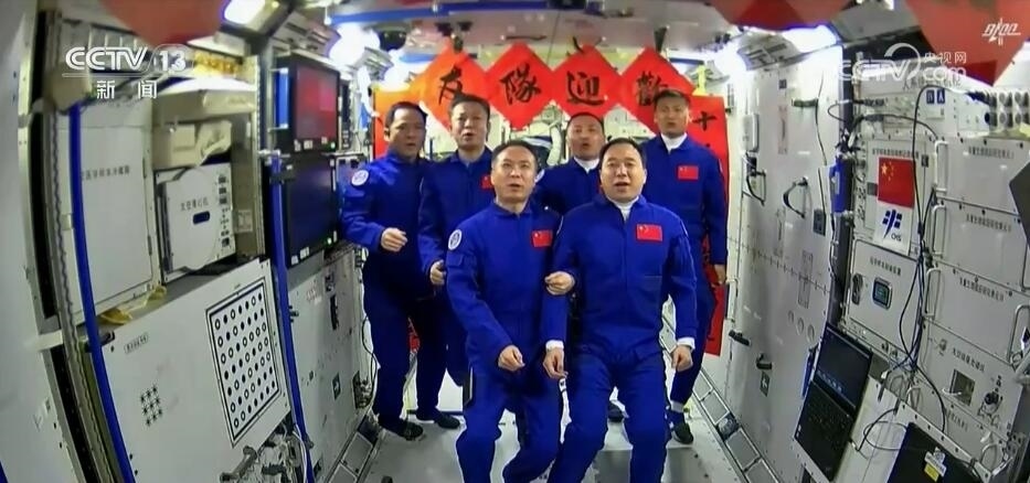 2023年10月26日19時(shí)34分,神舟十六號航天員乘組打開“家門”,歡迎神舟十七號航天員湯洪波、唐勝杰、江新林入駐“天宮”。兩個(gè)乘組在軌共同生活了約5天后,神舟十六號航天員在返回地球途中,還完成了此次飛行任務(wù)最后一項(xiàng)工作,首次拍攝了以地球?yàn)楸尘暗闹袊臻g站全景高清照片。