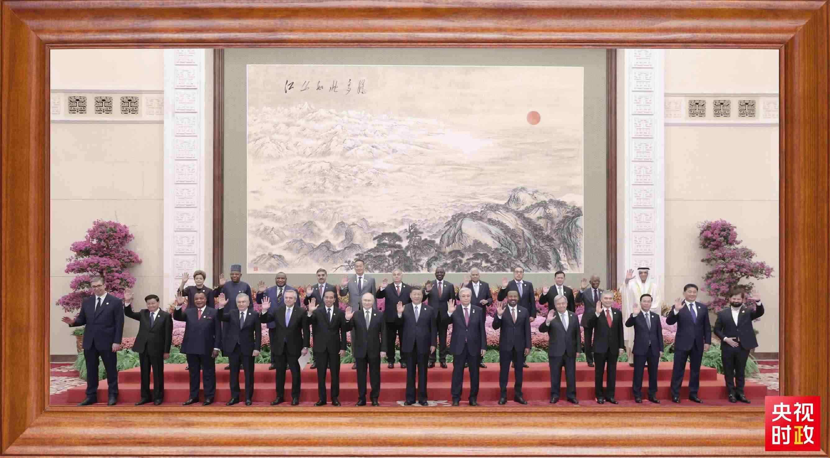 2023年10月18日,習(xí)近平主席在北京人民大會(huì)堂出席第三屆“一帶一路”國(guó)際合作高峰論壇開(kāi)幕式。會(huì)前,習(xí)近平同出席高峰論壇的外國(guó)國(guó)家元首、政府首腦和國(guó)際組織負(fù)責(zé)人等國(guó)際貴賓集體合影。
