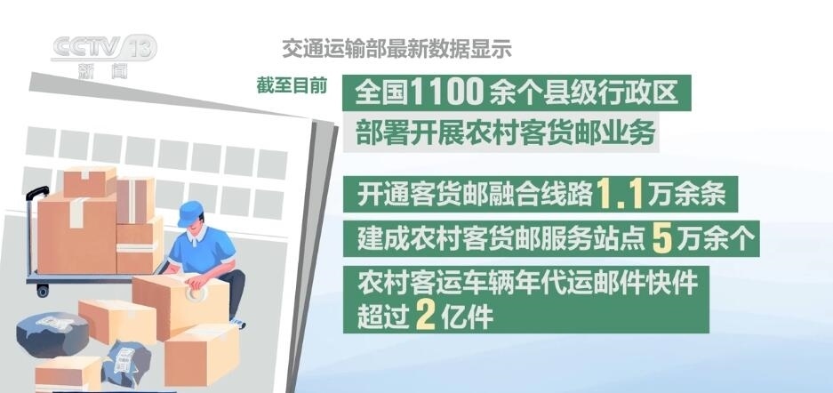 交通運輸部發(fā)布數(shù)據(jù)顯示,全國1100余個縣級行政區(qū)部署開展了農(nóng)村客貨郵業(yè)務,農(nóng)村客運車輛年代運郵件快件超過2億件。