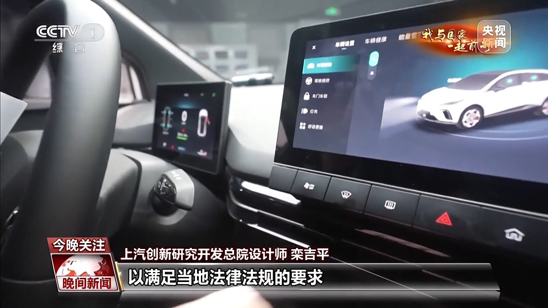上汽創(chuàng)新研究開發(fā)總院設(shè)計師 欒吉平:比如說在英國,大霧天氣,整個后擋窗我們會增加雨刮器。比如在中東,塵暴天氣會比較多一些,在整個后邊的零件的硬度上面我們會增加。而在泰國我們更改了按鍵圖標,以滿足當?shù)胤煞ㄒ?guī)的要求。