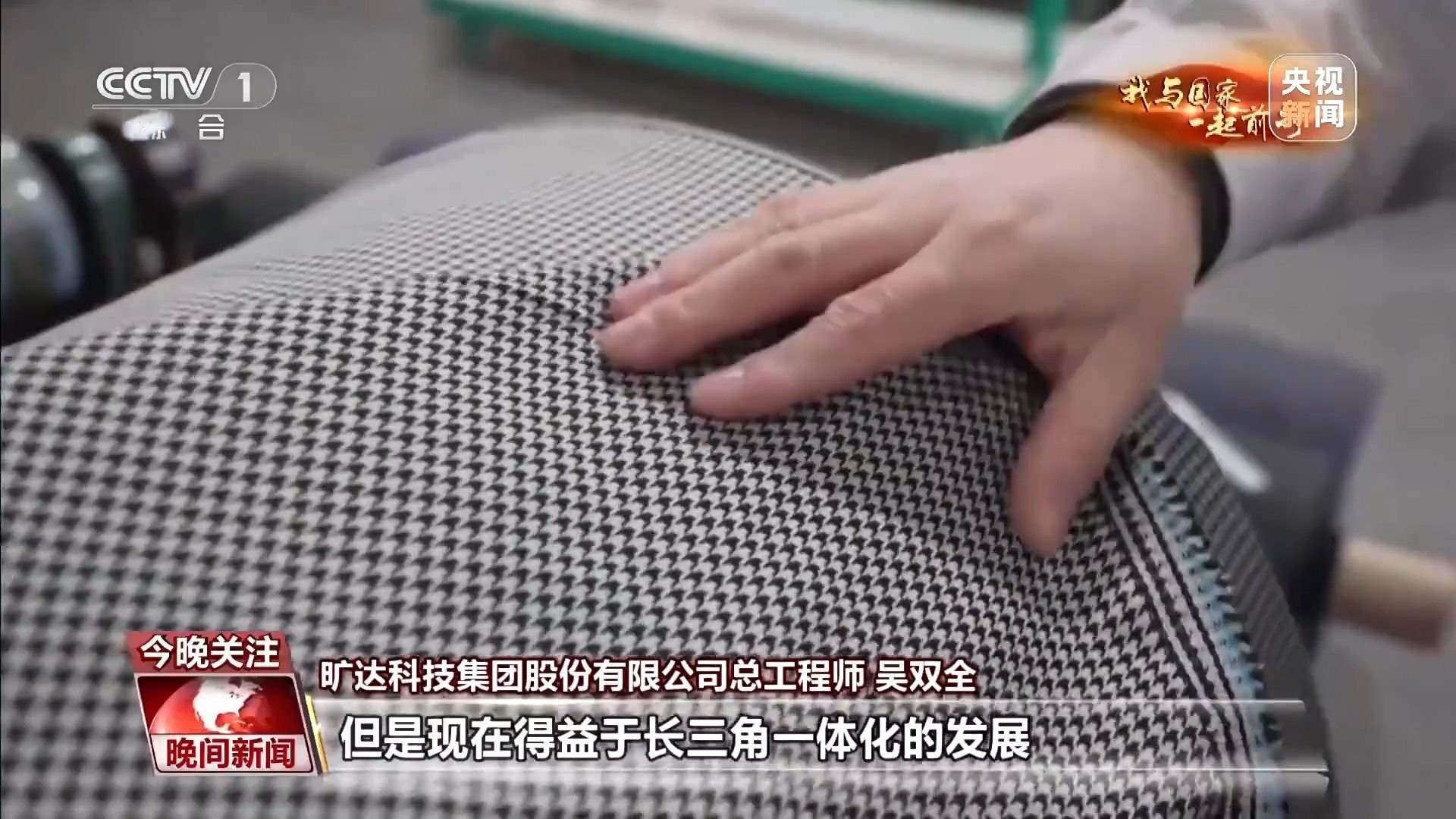 曠達科技集團股份有限公司總工程師 吳雙全:這款面料,三年前我們開發(fā)這款產(chǎn)品,可能需要6到12個月的時間,但是現(xiàn)在得益于長三角一體化的發(fā)展和我們的產(chǎn)業(yè)鏈完備的這樣一個優(yōu)勢,從接到客戶需求到最終批量供貨,我們只需要3個月的時間。