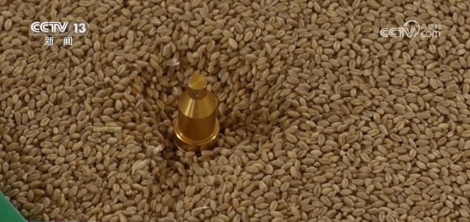 由于提前進(jìn)行了預(yù)約,糧庫的工作人員與付士??焖俅_認(rèn)好信息之后,就開始對糧食進(jìn)行取樣。為了減少農(nóng)戶的等待時(shí)間,在這一環(huán)節(jié),同樣用先進(jìn)的科技手段加了速,只需要兩三分鐘就可以完成。