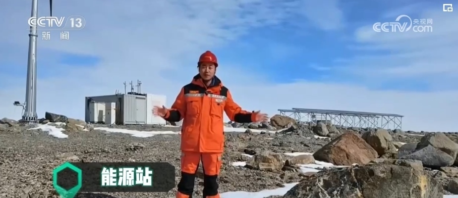 總臺央視記者 李寧:主站的下方就是正在建設(shè)中的停機坪。由于南極獨特的地理環(huán)境,對于直升機的需求非常大,無論是運貨還是運人都離不開直升機。因此,停機坪也是每個科考站必備的基礎(chǔ)設(shè)施。這里是距離新站大概有1公里的一個山頭,也是未來能源站所在的區(qū)域。目前,這個地方正在進行新能源的測試,這里面有光伏發(fā)電、風(fēng)力發(fā)電兩種方式,建成之后新站60%的能源供應(yīng)都將由新能源來完成。