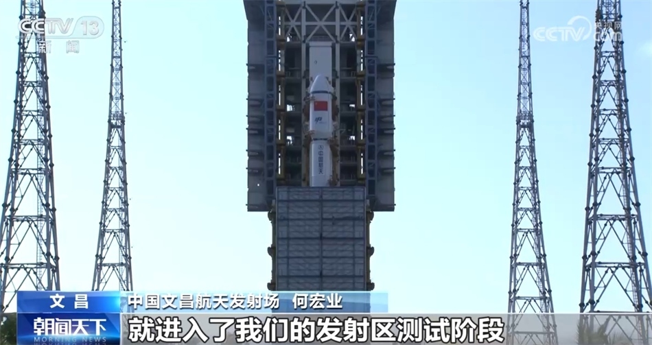 中國文昌航天發(fā)射場 何宏業(yè):船箭組合體轉(zhuǎn)到發(fā)射區(qū)之后,就進(jìn)入了發(fā)射區(qū)測試階段,主要完成相關(guān)的器件連接、貯箱的氣檢和置換以及電氣系統(tǒng)的功能檢查等加注發(fā)射的準(zhǔn)備工作。