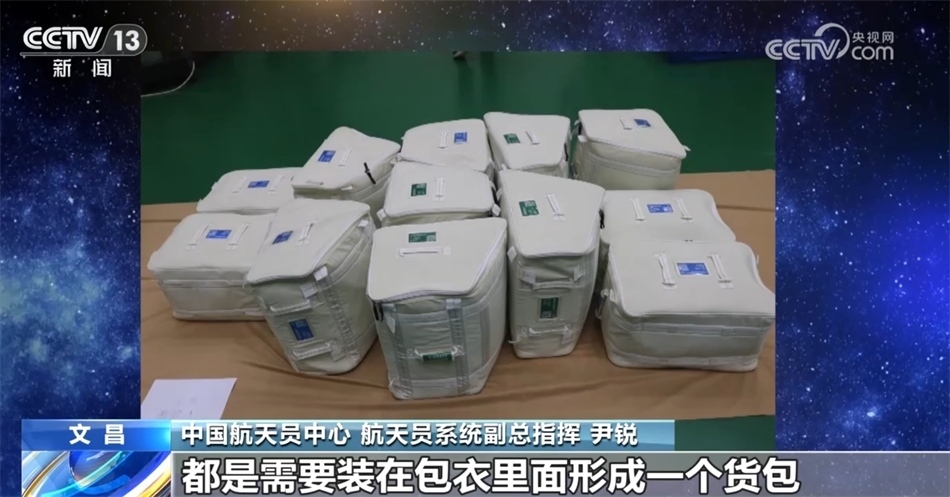 中國航天員中心 航天員系統(tǒng)副總指揮 尹銳:上行貨包外包裝的包衣,這個包衣里面添加了一些甲殼素的材料,讓它具有了一些抗菌防霉的作用。我們乘員的物資、航天員個人的裝備等以及環(huán)控生保的這些物資,都是需要裝在包衣里面形成一個貨包,然后整船進(jìn)行交付。