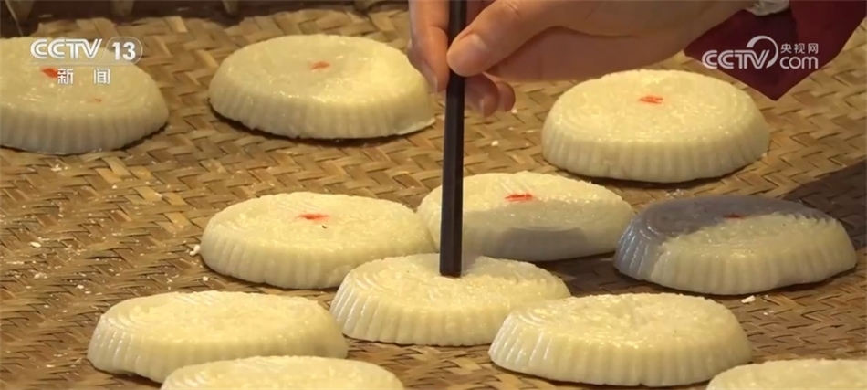 這幾天,黃山市黃山區(qū)湯口鎮(zhèn)的村民們正忙著打“食桃”。村民們將糯米和秈米碾成米粉,按比例加熱水攪拌,再將一塊一塊球狀的米粉團摁進模子里敲打出來,打好的食桃放入蒸箱中,蒸二十分鐘即可出鍋。蒸熟的食桃口感綿糯,刻著各種吉祥圖案,寓意著人們對新一年的祝福和期盼。