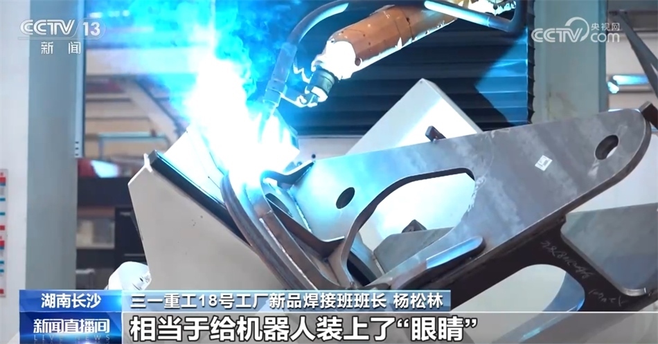 三一重工18號工廠新品焊接班班長 楊松林:這就是我工作的地方。這邊有一排排的工作島,穩(wěn)居“C”位的就是我們的轉(zhuǎn)臺焊接工作島。依托數(shù)字化電弧跟蹤技術(shù),相當于給機器人裝上了“眼睛”,焊槍可以自己去尋找鎖定,并跟蹤焊點,實現(xiàn)連續(xù)性的焊接,在行業(yè)還是首創(chuàng),我們的效率和質(zhì)量都大大提升了。