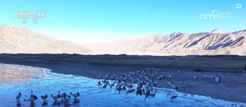 西藏的越冬水鳥主要有黑頸鶴、斑頭雁、赤麻鴨等。監(jiān)測隊(duì)設(shè)立了505個觀測點(diǎn),共記錄調(diào)查軌跡數(shù)407條,觀測到水鳥45種。其中,包括兩種國家一級保護(hù)動物,分別是黑頸鶴和白尾海雕。7種國家二級保護(hù)動物,分別是灰鶴、鴛鴦、白額雁、斑頭秋沙鴨、黑頸鸊鷉、角鸊鷉、花臉鴨。還有重要生態(tài)、科學(xué)、社會價值的陸生野生動物36種。