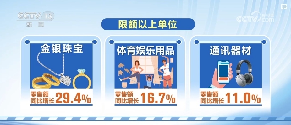 2023年12月,社會(huì)消費(fèi)品零售總額4.36萬億元,同比增長(zhǎng)7.4%。其中,商品銷售穩(wěn)步增長(zhǎng),升級(jí)類商品消費(fèi)需求增長(zhǎng)明顯。商品零售額同比增長(zhǎng)4.8%,限額以上單位金銀珠寶、體育娛樂用品、通訊器材零售額同比分別增長(zhǎng)了29.4%、16.7%和11.0%。