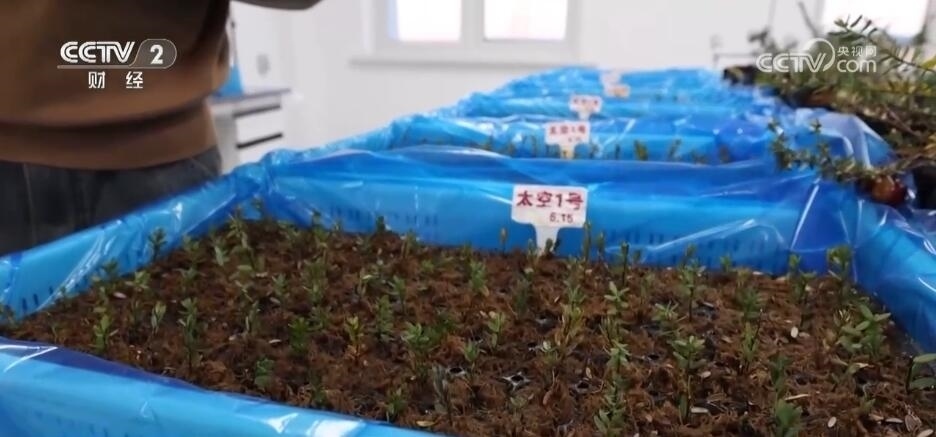 總臺(tái)記者 張程:在我身邊的這些蔓越莓苗,就是在2022年的6月5號(hào),跟隨神舟14號(hào)飛船上天之后,又返回地球的蔓越莓種苗,現(xiàn)在已經(jīng)是破土而出。蔓越莓種植時(shí)間比較長(zhǎng),三年掛果,五年才能夠進(jìn)入到豐產(chǎn)期。而我們?cè)谶@邊看到的就是2015年的種苗,現(xiàn)在正好處在盛果期,這個(gè)果子形如瑪瑙、色澤鮮亮。