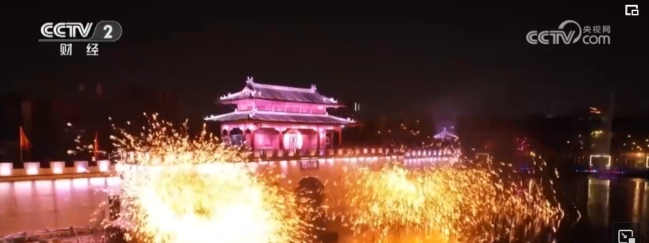 當(dāng)夜幕降臨,八朝古都開封也在燈光的裝扮下流光溢彩。打鐵花是流傳于豫晉地區(qū)民間傳統(tǒng)的煙火,至今已傳承千余年。在清明上河園內(nèi),表演者先將鐵水舀起拋向空中,再用力擊打空中的鐵水,一時(shí)間鐵花飛濺、流星如瀑。園內(nèi),亭臺(tái)樓閣雕梁畫棟、虹橋清波舟船往來,大型實(shí)景水上演出再現(xiàn)了北宋汴梁的盛世繁榮。