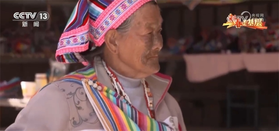 現(xiàn)在獨(dú)龍江鄉(xiāng),近千位獨(dú)龍族婦女和她一樣,在用傳統(tǒng)的方式編織著走向世界的獨(dú)龍?zhí)海钗氖四棠叹褪瞧渲兄?,她是目前?dú)龍族僅有的17位文面女中的一位。當(dāng)記者找到她時(shí),老奶奶正在熟練得玩手機(jī)。自從2022年5G網(wǎng)絡(luò)覆蓋了獨(dú)龍江鄉(xiāng)的6個(gè)行政村后,李文仕奶奶除了務(wù)農(nóng)織布、唱歌跳舞,還培養(yǎng)了一個(gè)新的愛(ài)好,就是網(wǎng)上沖浪。