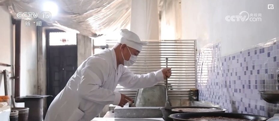 在山西芮城,制作芝麻糖已有上百年的歷史。在一家芝麻糖加工車間,早晨7點(diǎn)多,制糖師傅們就開(kāi)始制作糖稀,熬制好的糖稀在鍋里不斷翻滾,隨后的工序更加關(guān)鍵,拉糖、切糖要一氣呵成,芝麻糖才能色香味俱佳。