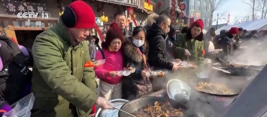 在吉林長(zhǎng)春蓮花島年貨大集上,大家不僅可以逛大集買年貨,還能品嘗到東北特色美食鐵鍋燉的多種吃法。冰天雪地中品嘗熱氣騰騰的鐵鍋燉是怎樣一種感受?我們跟隨總臺(tái)記者王亞平一起去現(xiàn)場(chǎng)看看。