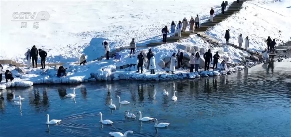 總臺(tái)記者 李楠:這里就是天山環(huán)抱中的新疆賽里木湖景區(qū),周圍的群山和湖面仍舊被冰雪覆蓋。在我身后正在舉辦冰雪“那達(dá)慕”迎春活動(dòng),當(dāng)?shù)氐霓r(nóng)牧民群眾和來(lái)自全國(guó)各地的游客正參與其中。