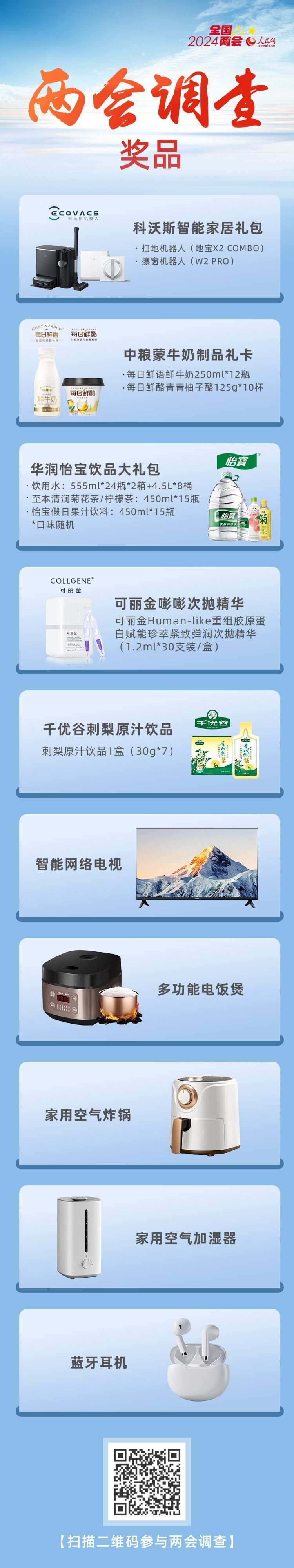 為感謝網(wǎng)友對全國兩會調(diào)查的支持,參與人民網(wǎng)2024年全國兩會調(diào)查還有機(jī)會抽取精美獎品。