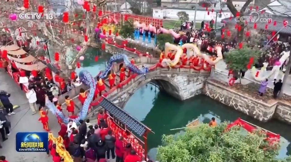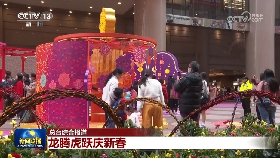 央視網(wǎng)消息(新聞聯(lián)播):各地的人們?cè)诙嘧硕嗖实幕顒?dòng)中歡度新春假日,慶祝龍年新春的到來(lái)。