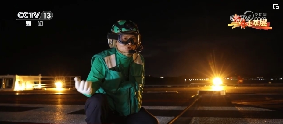 引導(dǎo)員唐曉菁的工作是負(fù)責(zé)引導(dǎo)艦載機(jī)就位、起飛。由于甲板上設(shè)備眾多,她的一舉一動(dòng)都至關(guān)重要,戰(zhàn)機(jī)起飛時(shí),她的戰(zhàn)位距離飛機(jī)發(fā)動(dòng)機(jī)只有不到20米。