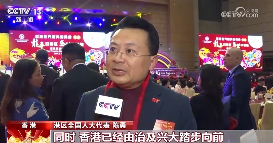 港區(qū)全國人大代表 陳勇:很多香港的朋友到內地(或)留在香港共度一個歡慶的龍年,同時,香港已經由治及興大踏步向前,同時還助力強國建設和民族的復興。