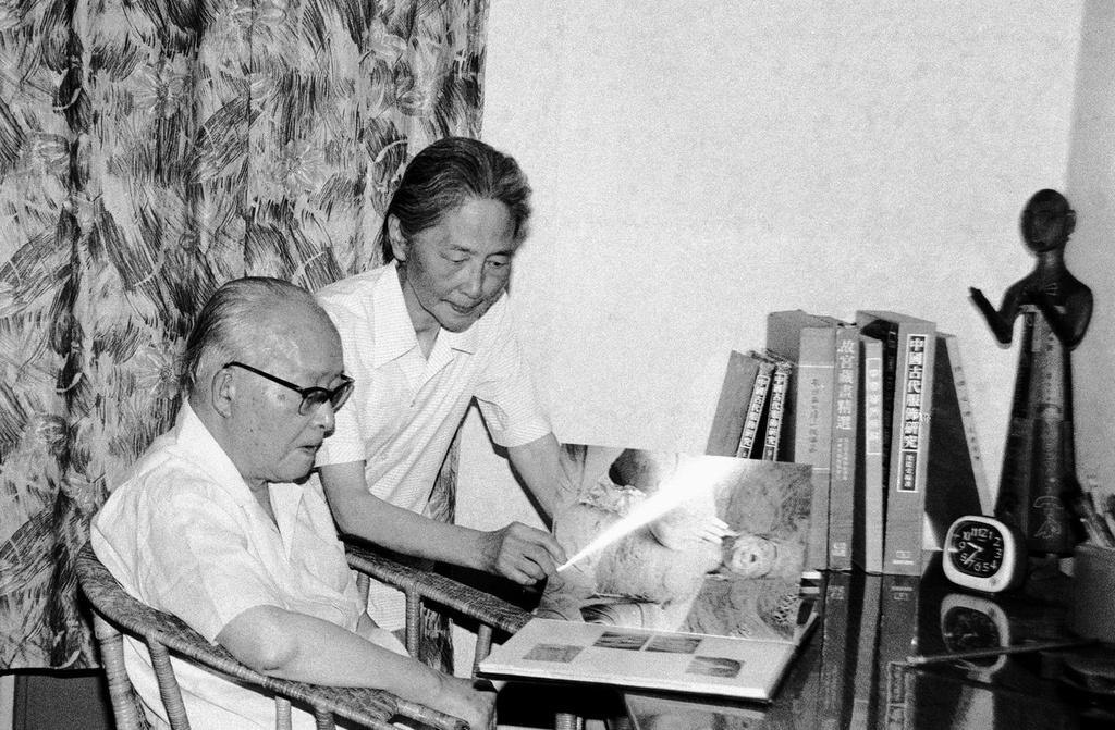 圖為沈從文和夫人在家中翻閱畫冊(1986年6月7日攝)。