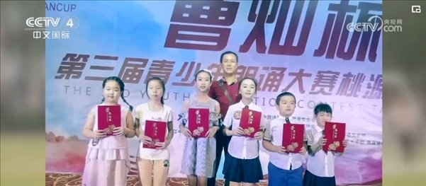 最初只有五名學(xué)生的朗誦團(tuán)“沅水童聲”就這樣成立了。上課和朗讀,幾乎占據(jù)了郭云兵的全部時間,他買來教材、打卡各個平臺、總結(jié)朗讀技巧,他把舞臺從教室搬到操場上、沅水河邊,鼓勵大家勇于表達(dá)……在2017年的“曹燦杯”全國青少年朗誦大賽中,孩子們一路過關(guān)斬將殺進(jìn)省賽,捧回3塊金牌。很多孩子變得越來越自信,也在成長中逐漸懂事,感受到父母的不易。