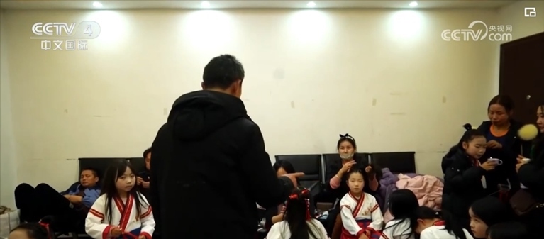 學(xué)生們要放寒假了,郭云兵的寒假計劃已經(jīng)排的滿滿當(dāng)當(dāng),其中一項就是帶領(lǐng)朗誦團(tuán)參加當(dāng)?shù)厣賰捍和淼匿浿?。許多新加入的成員還是第一次站上舞臺,上場前郭云兵給他們加油打氣。