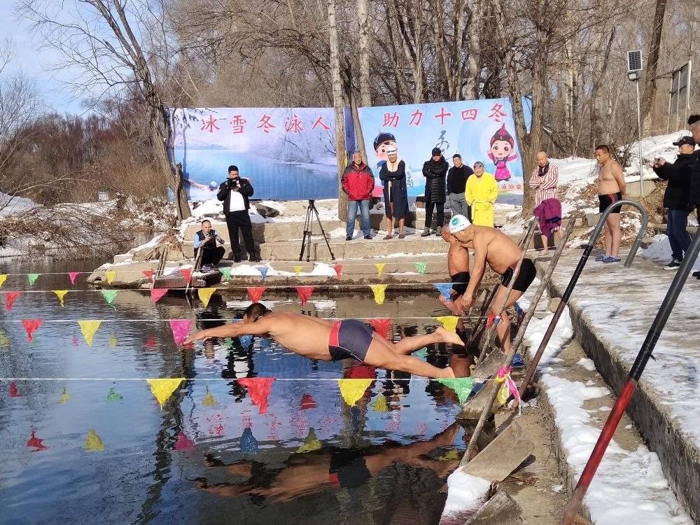 內(nèi)蒙古呼倫貝爾市扎蘭屯市的冬泳愛好者在進行冬泳。(溫秀華攝 新華社發(fā))