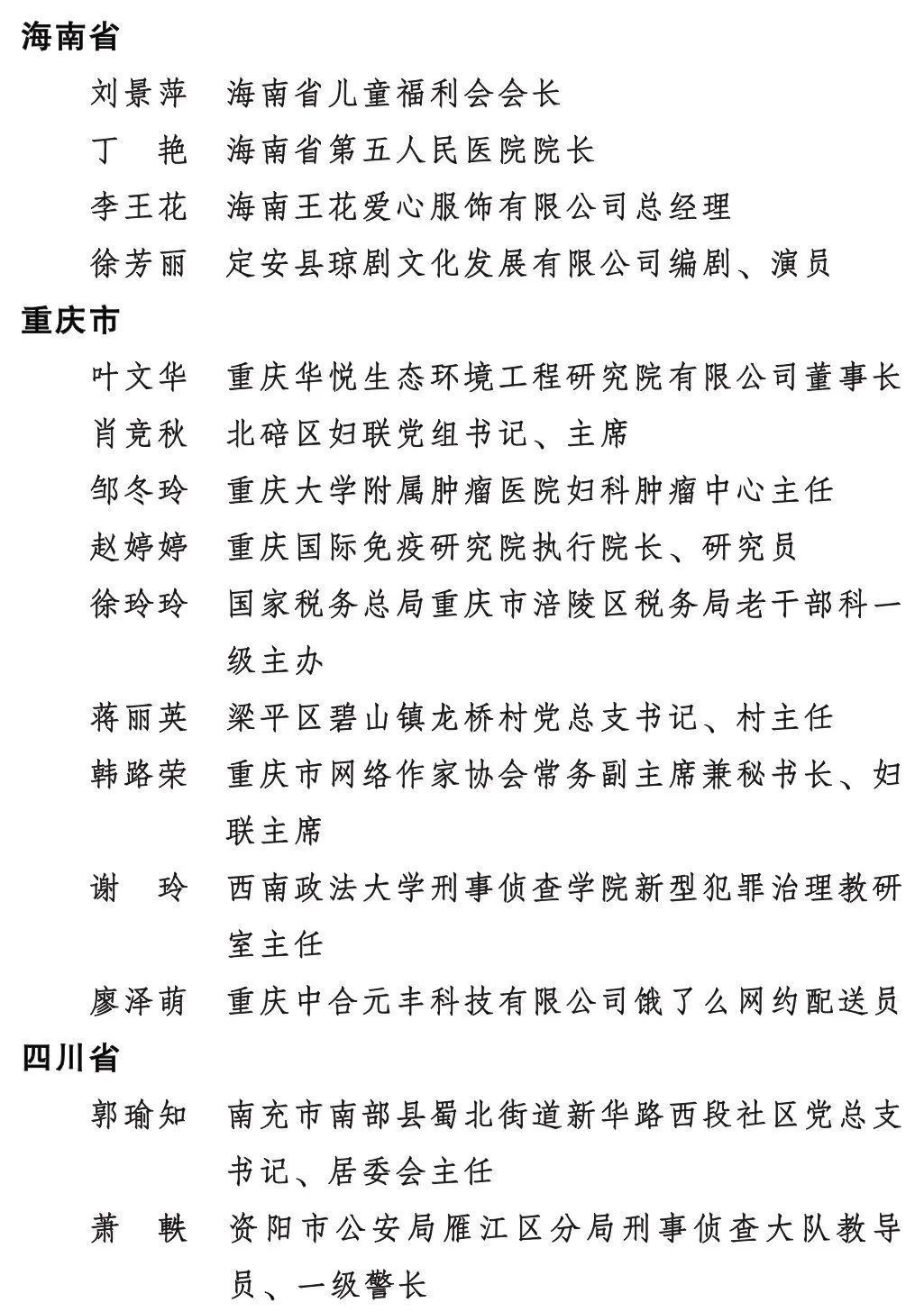 全國三八紅旗手標(biāo)兵名單