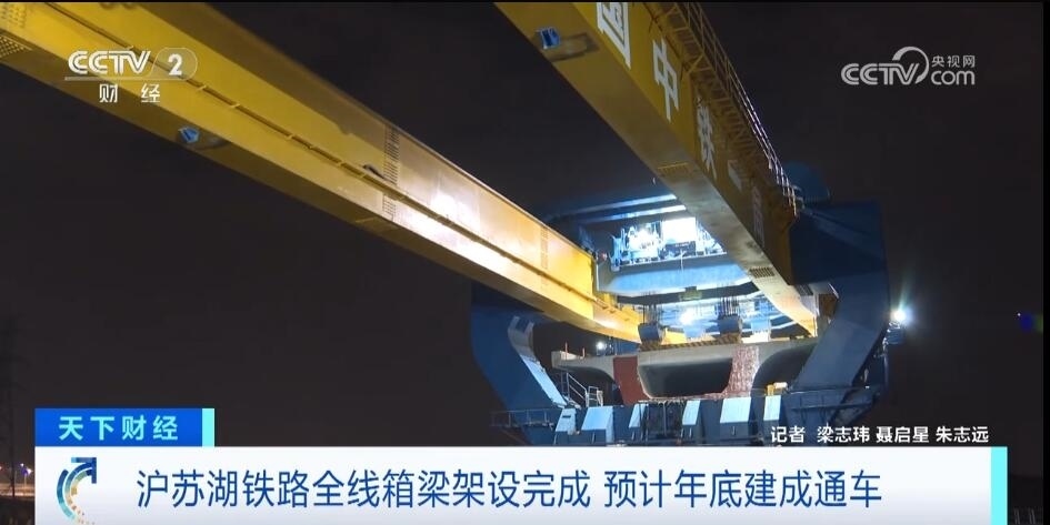 3月4日凌晨,隨著最后一榀長度32.6米、重量726噸的箱梁成功架設(shè)到橋墩上,滬蘇湖鐵路箱梁架設(shè)全部完成。