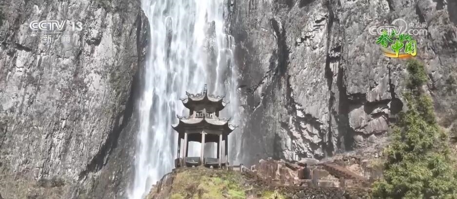 春日中國,山河壯美?,F(xiàn)在我們看到的是位于浙江溫州文成縣的百丈漈景區(qū),景區(qū)為“V”字形深壑巨澗,澗長1200米,落差353米,從而形成一漈、二漈、三漈的三折瀑布。初春時分,萬物復蘇,正是游人踏青的好時節(jié),不少游客慕名而來,近距離感受瀑布的壯麗之美。
