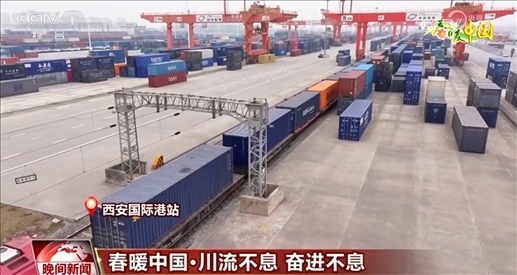 忙碌起來的不只是港口,西安國際港站汽笛聲聲、班列轟鳴,龍門吊正加緊作業(yè)。這輛滿載光伏設(shè)備和新能源汽車等貨物的中歐班列,預(yù)計(jì)9天后將抵達(dá)目的地——烏茲別克斯坦塔什干。在這里,平均每1小時(shí)40分鐘就有一列中歐班列出發(fā)或到達(dá)。“一帶一路”建設(shè)讓西部成為開放前沿,開放是一種理念、一條路,更是一種胸襟。?