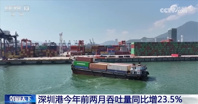 港口是國民經(jīng)濟(jì)發(fā)展的“晴雨表”,今年以來,深圳港迎來海運(yùn)出貨高峰。據(jù)深圳市交通運(yùn)輸局統(tǒng)計(jì),今年前兩個月,深圳港集裝箱吞吐量達(dá)483萬標(biāo)箱,同比增長23.5%。