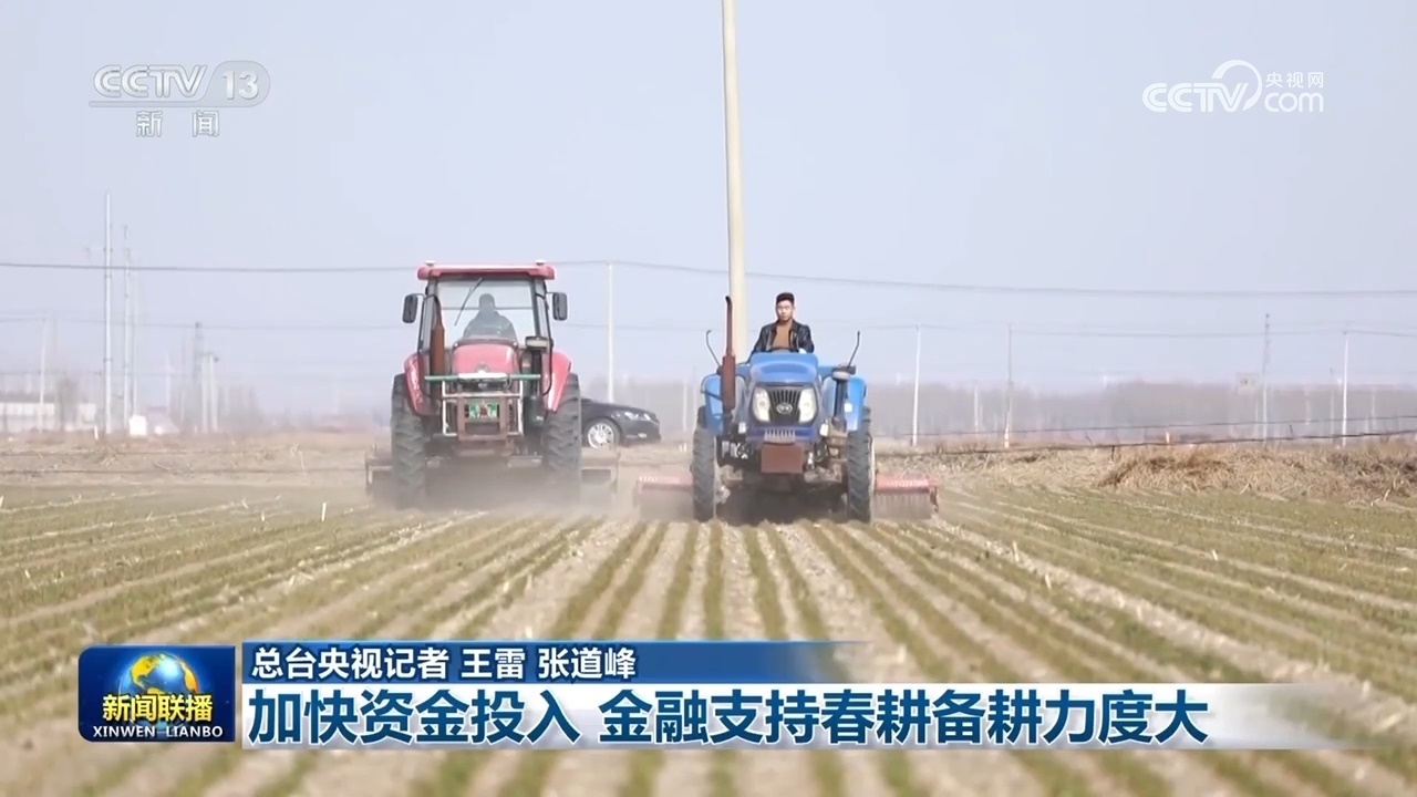 央視網消息(新聞聯(lián)播):今年以來,金融機構持續(xù)加大對春耕備耕的資金投入。截至2月末,全國糧食重點領域貸款余額、普惠型涉農貸款余額均保持較快增長。