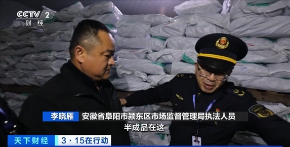 總臺(tái)央視記者 李雪峰:我所在位置是安徽阜陽(yáng)潁東區(qū)。我身后就是被“3·15”晚會(huì)曝光的安徽廚先生食品有限公司,現(xiàn)場(chǎng)已經(jīng)有大批的執(zhí)法人員抵達(dá)了這里,對(duì)這家企業(yè)進(jìn)行查處。