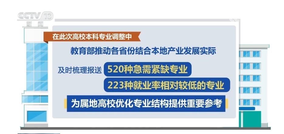 據(jù)介紹,在本次高校專業(yè)調(diào)整中,教育部推動各省份結合本地產(chǎn)業(yè)發(fā)展實際,及時梳理報送了520種急需緊缺專業(yè)和223種就業(yè)率相對較低的專業(yè),為屬地高校優(yōu)化專業(yè)結構提供重要參考。