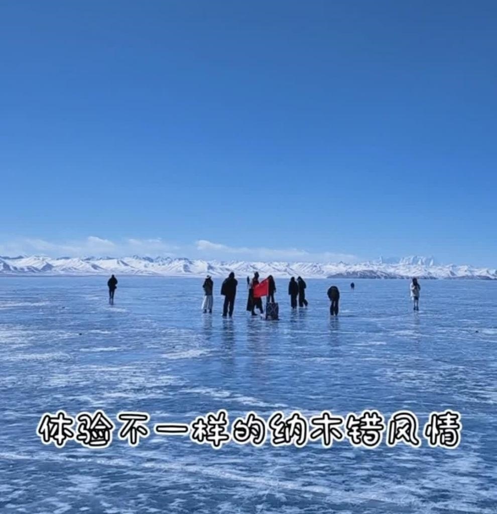 當(dāng)前,納木錯(cuò)正值限定“藍(lán)冰季”,一望無際的藍(lán)色冰面,遼闊而寧靜。來自全國各地的游客來到納木錯(cuò)享受別樣的冰雪風(fēng)情。