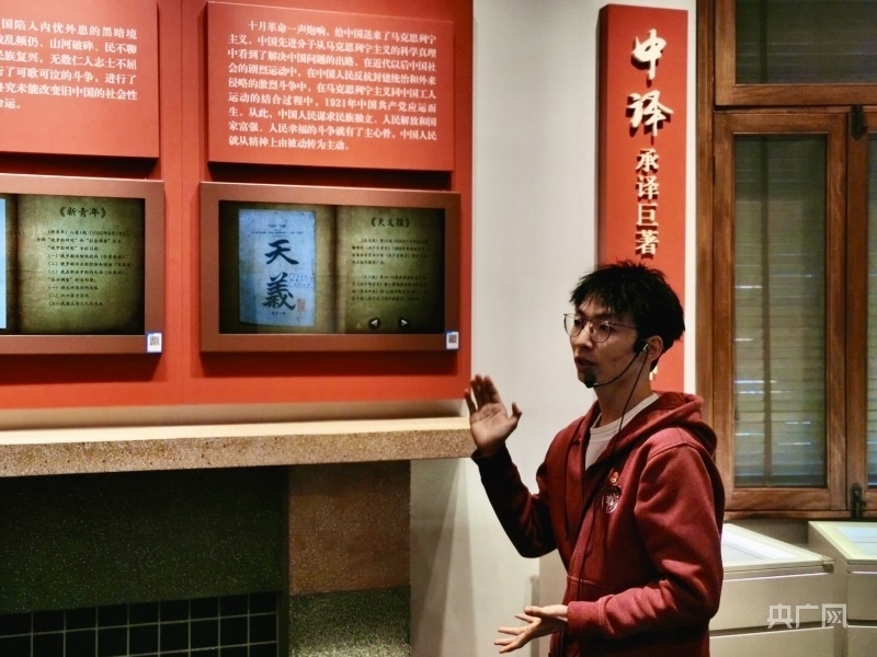 蔡薛文在《共產黨宣言》展示館內講解(央廣網發(fā) 復旦大學黨委宣傳部供圖)