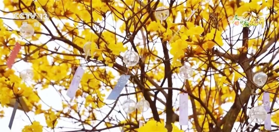 這幾天,在廣西梧州市萬秀區(qū)的城東鎮(zhèn),滿山絢爛黃燦,風鈴花密密匝匝地綻放在梢頭,在陽光的照耀下顯得格外亮眼。