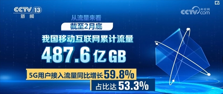 從流量來看,截至2月底,我國移動互聯(lián)網(wǎng)累計流量達(dá)487.6億GB,其中,5G用戶接入流量同比增長59.8%,占比達(dá)53.3%??梢钥闯?,5G已成為了流量使用增長的主動力。