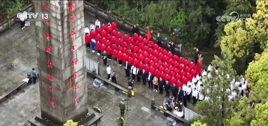 在浙江德清,共青團員、少先隊員、退役軍人同上一堂愛國主義教育課,大家擦拭烈士墓碑上的塵土,為烈士碑文描摹、填漆。