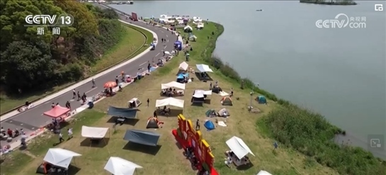 周末,在杭州拱墅運(yùn)河體育公園的露營(yíng)區(qū),不少市民扎起輕便的帳篷,便攜桌上擺滿了水果零食。