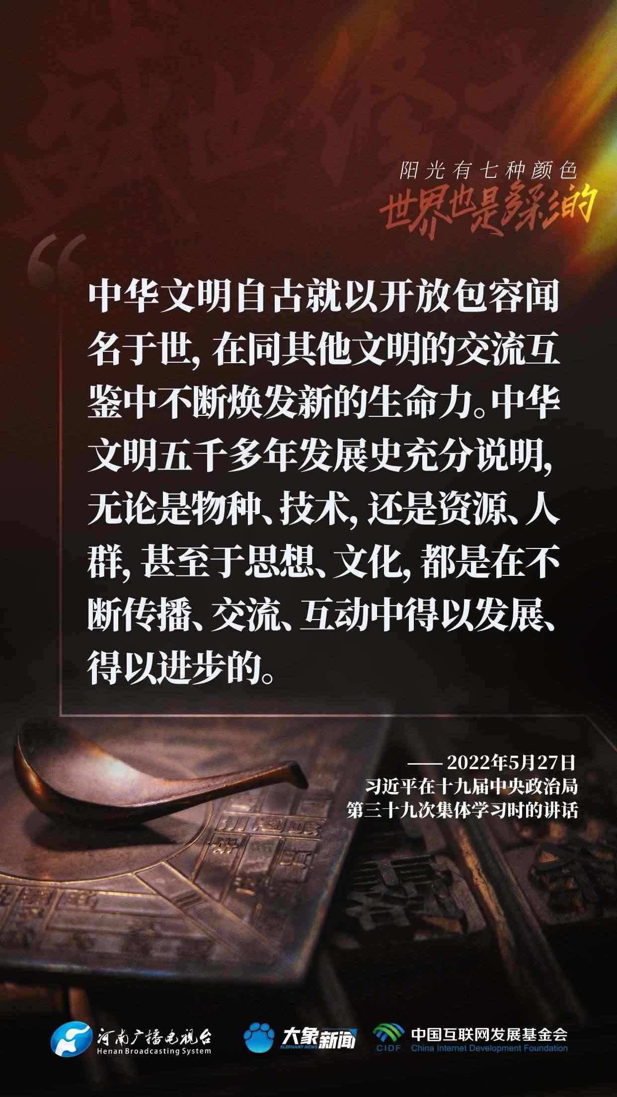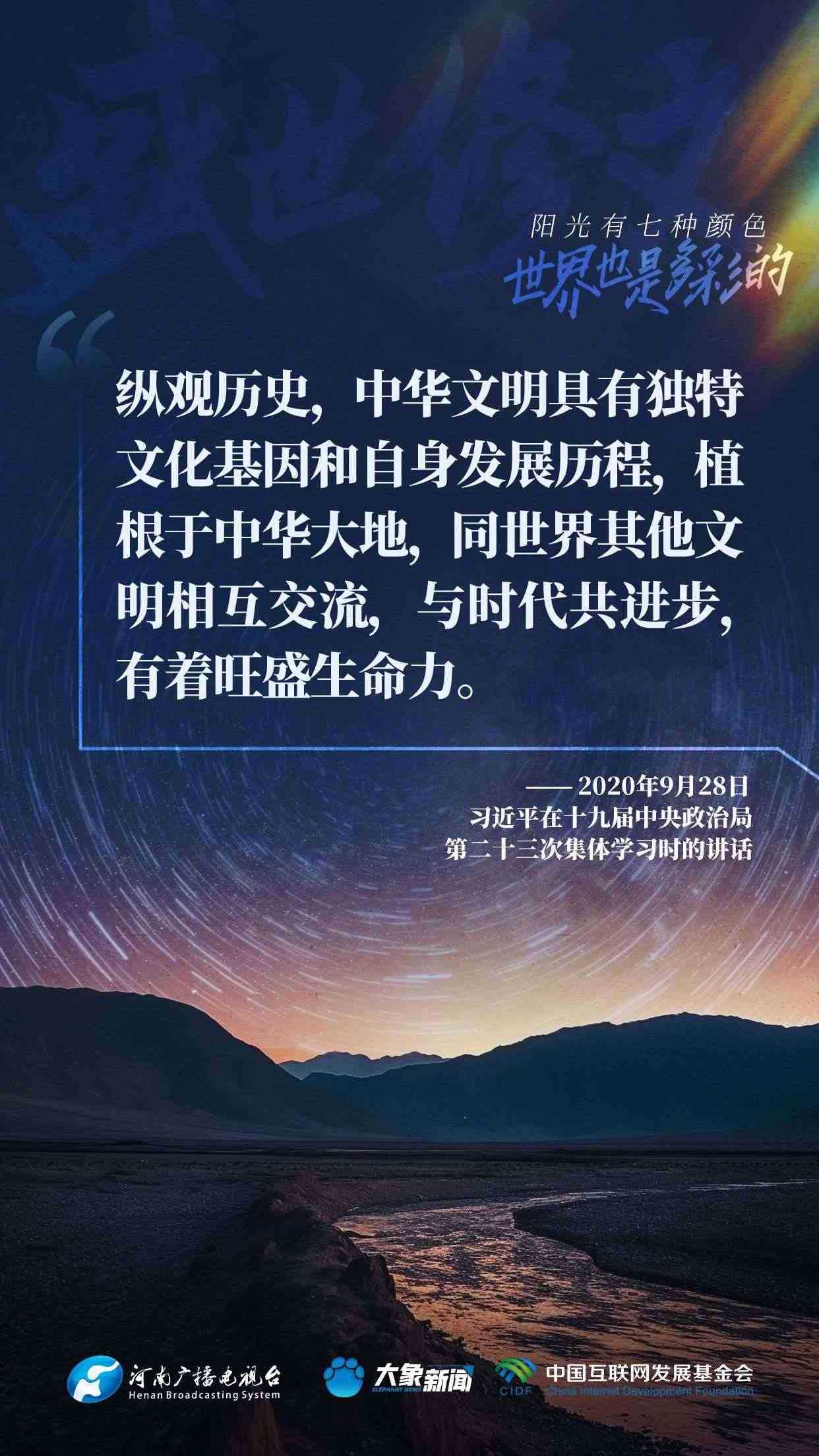 今天推出:習(xí)近平文化思想金句之《盛世修文|陽光有七種顏色,世界也是多彩的》