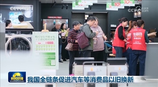 央視網(wǎng)消息(新聞聯(lián)播):記者從商務(wù)部了解到,近日,14部門聯(lián)合發(fā)布《推動消費品以舊換新行動方案》,部署組織在全國范圍內(nèi)開展汽車、家電、家裝廚衛(wèi)等消費品以舊換新。