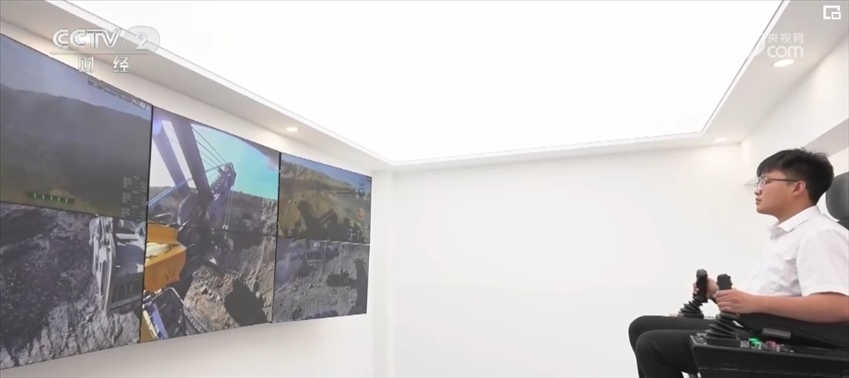 在內(nèi)蒙古南露天煤礦的生產(chǎn)作業(yè)現(xiàn)場,27立電鏟和108噸自卸車正在緊張有序地運行。與傳統(tǒng)設備相比,他們都是無人操作,產(chǎn)煤更加高效,駕駛員的操作空間也由原來狹小的司機室變?yōu)檫h在千米外的遙控間。
