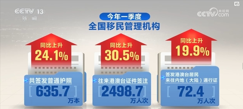 一季度出入境人員同比增長410%