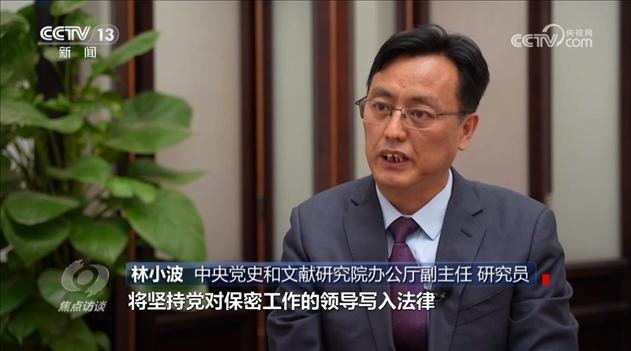 林小波:“這次保密法修訂將堅持黨對保密工作的領導寫入法律,明確了中央保密工作領導機構職責,目的就是要更好發(fā)揮黨管保密的政治優(yōu)勢和組織優(yōu)勢。”