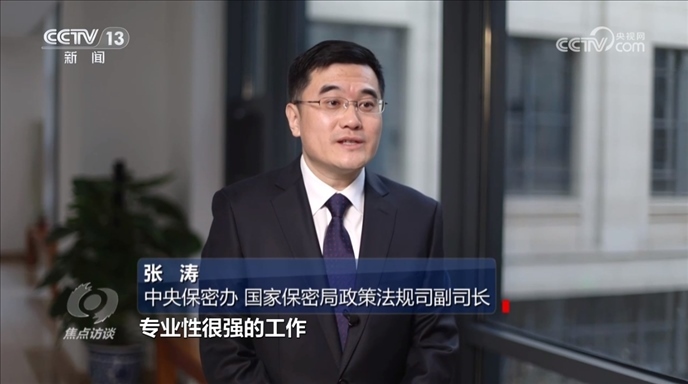 中央保密辦、國家保密局政策法規(guī)司副司長張濤:“國家秘密的確定是一項政策性、專業(yè)性很強的工作,確定國家秘密有嚴格的要求,比如確定的主體、確定的權限、確定的程序、確定的依據(jù),包括國家秘密的知悉范圍、審核都有非常嚴格的要求。”